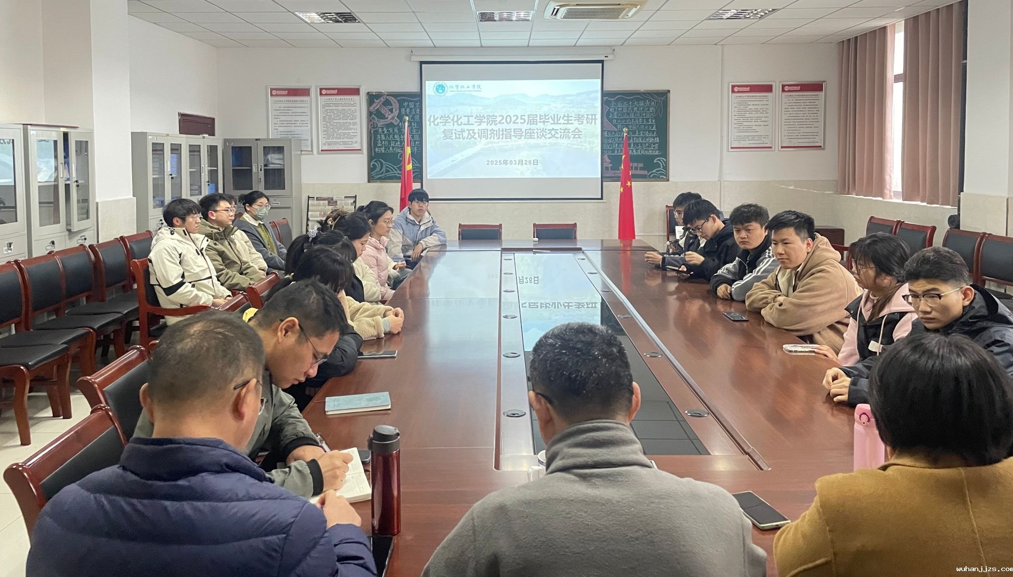 近日,化学化工学院在H310召开2025届毕业生考研复试及调剂指导座谈会。化学化工学院副院长官叶斌教授,专任教师张传磊、江彬彬博士受邀出席,党委副书记、纪委书记鲍青燕主持会议。