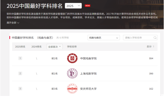 近日,高等教育评价专业机构软科发布“2025中国最好学科排名”,我校“戏曲与曲艺”学科以前三名的成绩上榜。