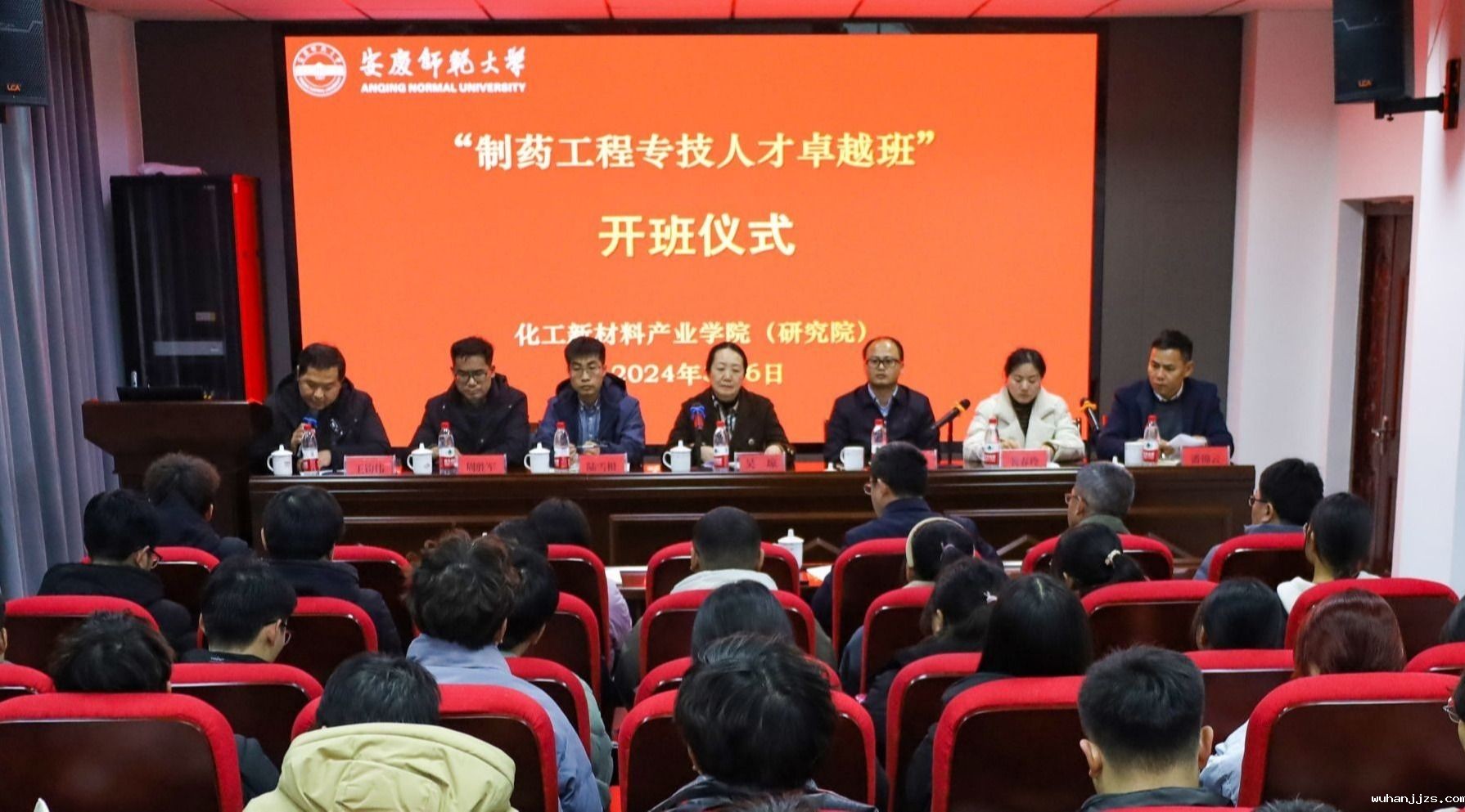3月6日,学校举行“制药工程专技人才卓越班”开班仪式。校党委常委、副校长吴琼,安庆高新区管委会副主任余志刚出席仪式。卓越班合作企业代表,教务处和化学化工学院负责人、教师代表,“卓越班”全体同学共100余人参加仪式。